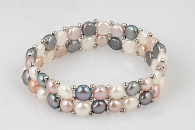 This dazzling and unique multicolor freshwater pearl stretch bracelet, consists of two multicolor rows (white, purple & …