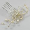 This stunning hand crafted bridal comb, features a flower design that is adorned by 3-4mm white potato pearls, 4-5mm whi…
