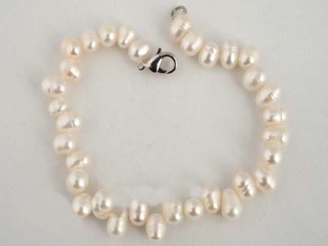 This exquisite bracelet features lustrous 6–7mm white side-drilled freshwater cultured pearls, carefully strung on dual silk lines for added durability and elegance. Finished with a sterling silver lobster clasp, this 7.5-inch bracelet offers timeless beauty and secure wear—perfect for both everyday grace and special occasions.
