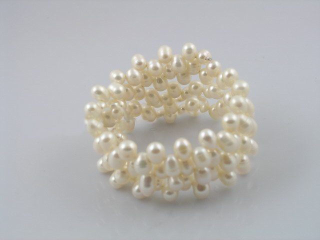 This is a dazzling and unique freshwater pearl stretch bracelet consisting of 7mm button shaped cultured freshwater pear…