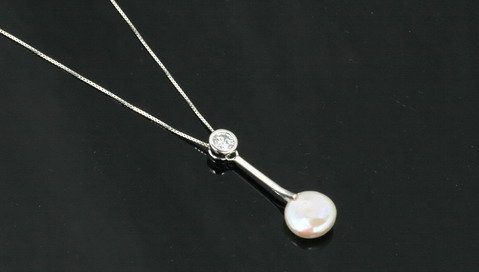 This magnificent sterling silver pendant features a luminous 13–14mm freshwater coin pearl accented by a clear round cubic zirconia stone on top. A perfect blend of classic elegance and modern sparkle.